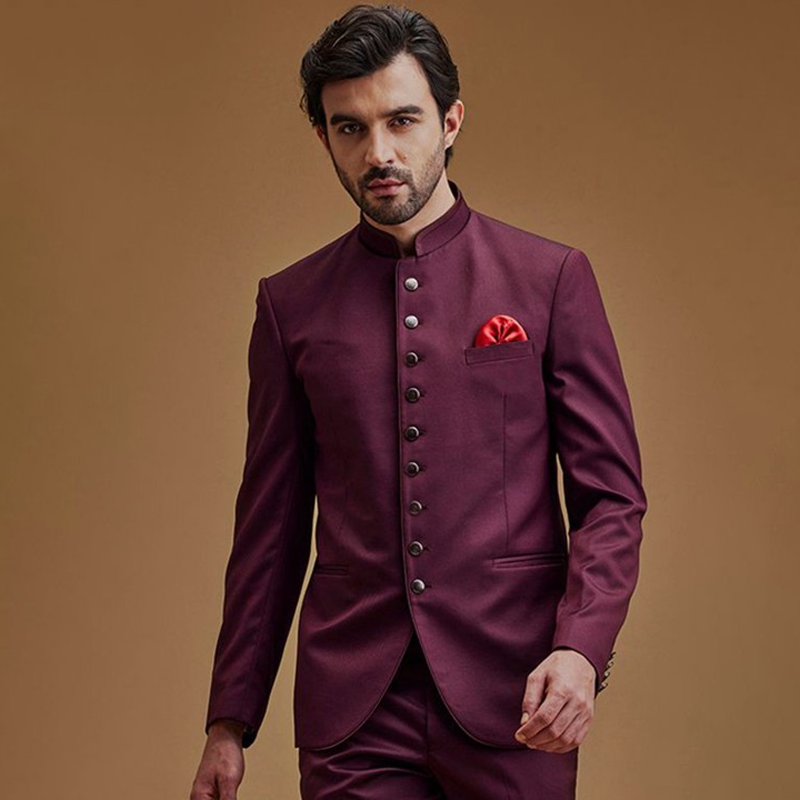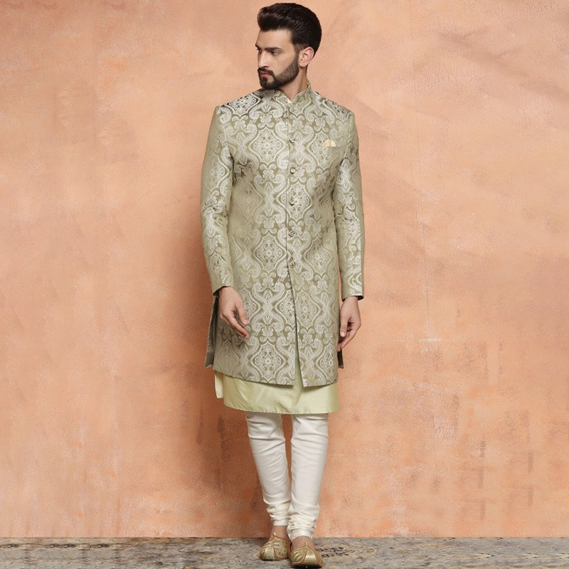 Self-Design Mandarin Collar Sherwani Set